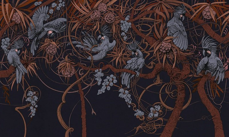Modne wzornictwo oraz kolorystyka to własnie znajdziemy w muralach firmy Wonderwall . Całym smaczkiem fototapety jest nierównomierne ubarwienie, który nadaje mroczny klimat.