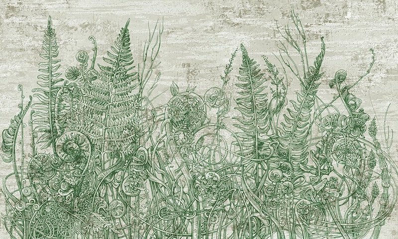 Modne wzornictwo oraz kolorystyka to własnie znajdziemy w muralach firmy Wonderwall . Całym smaczkiem fototapety jest nierównomierne ubarwienie, który nadaje mroczny klimat.