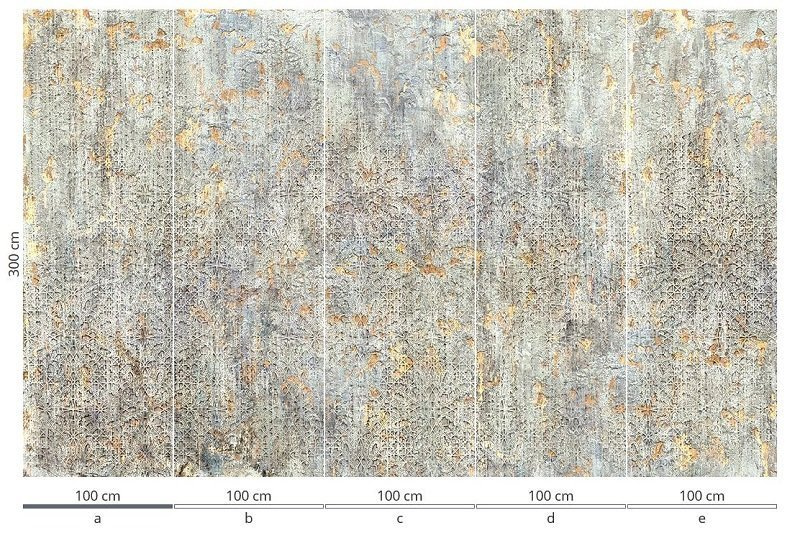 Murale marki Wonderwall sprzedajemy w rolkach o standardowych wymiarach: 100 cm x 300 cm. Jeśli wysokość waszego pomieszczenia jest mniejsza niż 3 metry, wówczas nadmiar tapety należy w odpowiednim miejscu odciąć. Na pełny wzór składa się pięć rolek: a, b, c, d i e. Można wybrać konkretne rolki dopasowując tapetę do swojego wnętrza. Lub można przygotować mural pod konkretny wymiar. W tym celu prosimy o kontakt pod mail sklep@iguane.pl
