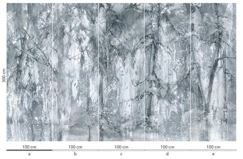 Murale marki Wonderwall sprzedajemy w rolkach o standardowych wymiarach: 100 cm x 300 cm. Jeśli wysokość waszego pomieszczenia jest mniejsza niż 3 metry, wówczas nadmiar tapety należy w odpowiednim miejscu odciąć. Na pełny wzór składa się pięć rolek: a, b, c, d i e. Można wybrać konkretne rolki dopasowując tapetę do swojego wnętrza. Lub można przygotować mural pod konkretny wymiar. W tym celu prosimy o kontakt pod mail sklep@iguane.pl