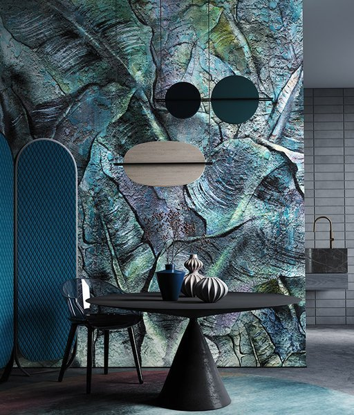 Modne wzornictwo oraz kolorystyka to własnie znajdziemy w muralach firmy Wonderwall . Całym smaczkiem fototapety jest nierównomierne ubarwienie, który nadaje mroczny klimat.