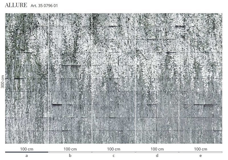 Murale marki Wonderwall sprzedajemy w rolkach o standardowych wymiarach: 100 cm x 300 cm. Jeśli wysokość waszego pomieszczenia jest mniejsza niż 3 metry, wówczas nadmiar tapety należy w odpowiednim miejscu odciąć. Na pełny wzór składa się pięć rolek: a, b, c, d i e. Można wybrać konkretne rolki dopasowując tapetę do swojego wnętrza. Lub można przygotować mural pod konkretny wymiar. W tym celu prosimy o kontakt pod mail sklep@iguane.pl