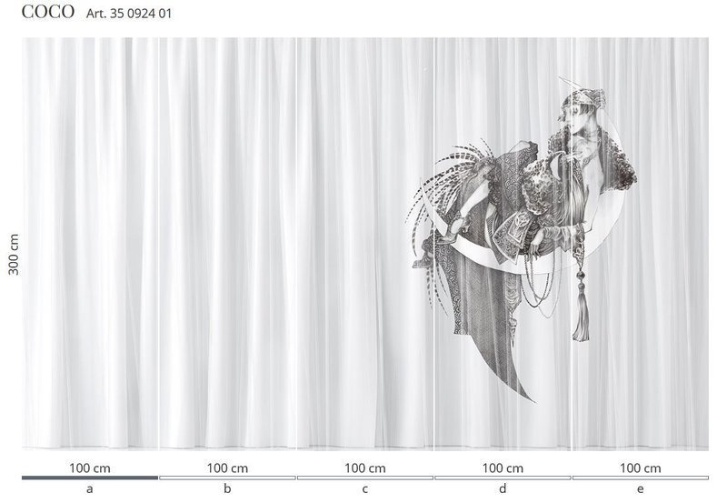 Murale marki Wonderwall sprzedajemy w rolkach o standardowych wymiarach: 100 cm x 300 cm. Jeśli wysokość waszego pomieszczenia jest mniejsza niż 3 metry, wówczas nadmiar tapety należy w odpowiednim miejscu odciąć. Na pełny wzór składa się pięć rolek: a, b, c, d i e. Można wybrać konkretne rolki dopasowując tapetę do swojego wnętrza. Lub można przygotować mural pod konkretny wymiar. W tym celu prosimy o kontakt pod mail sklep@iguane.pl