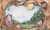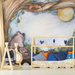 W cieniu drzew, pod drzewami misiowa rodzinka szykuje się do snu. Zamknięta kompozycja wzoru przeniesie Ciebie i Twojego malucha do świata baśni. Ciepłe, barwne kolory wzoru pozwolą na zaaranżowanie pokoju dla dziecka w każdym kolorze. Idealnie wpasuje się w nowoczesne wnętrze lub urządzone w stylu naturalnym czy boho.