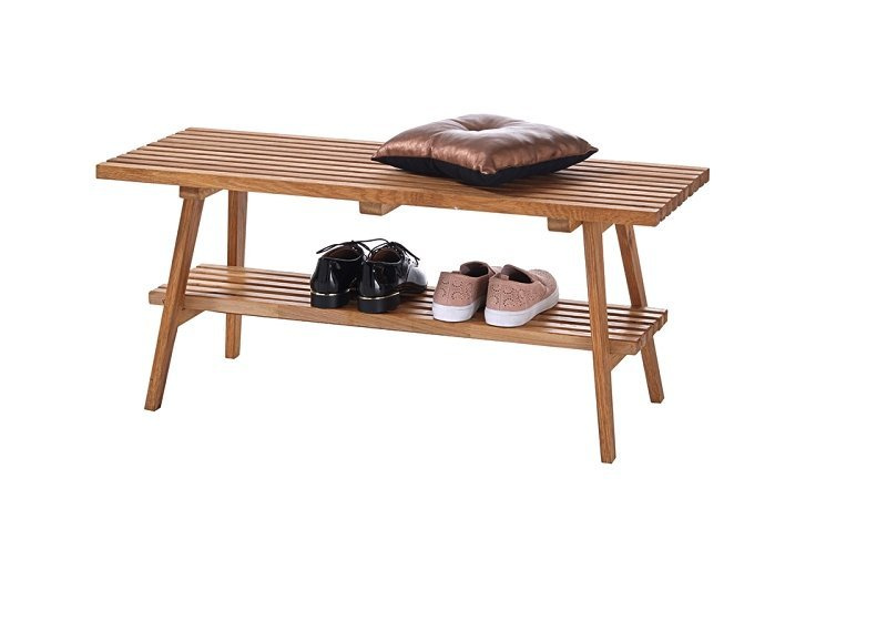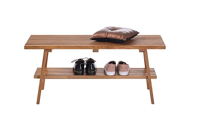 Ławka do przedpokoju z drewna dębowego olejowanego z półką.
