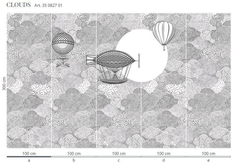 Murale marki Wonderwall sprzedajemy w rolkach o standardowych wymiarach: 100 cm x 300 cm. Jeśli wysokość waszego pomieszczenia jest mniejsza niż 3 metry, wówczas nadmiar tapety należy w odpowiednim miejscu odciąć. Na pełny wzór składa się pięć rolek: a, b, c, d i e. Można wybrać konkretne rolki dopasowując tapetę do swojego wnętrza. Lub można przygotować mural pod konkretny wymiar. W tym celu prosimy o kontakt pod mail sklep@iguane.pl