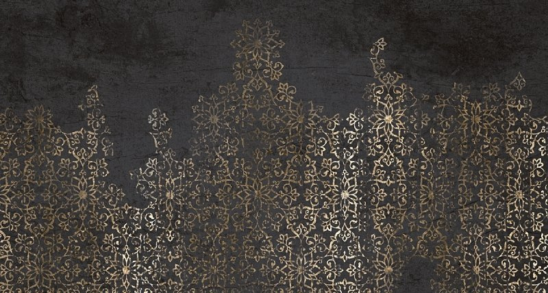 Mural Casablanca inspirowany orientalną kulturą przywodzi na myśl marokańską rękodzieło pełne detalu, przepychu. Piękne głębokie kolory podkreślają złoty ornament.