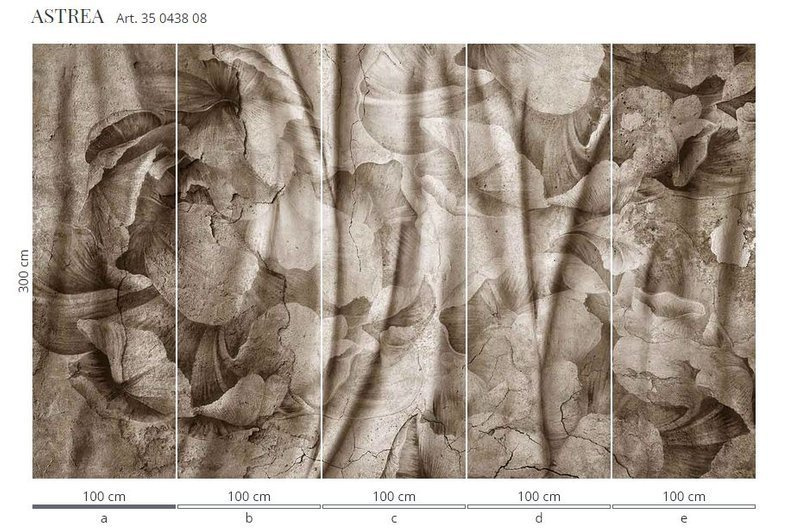 Murale marki Wonderwall sprzedajemy w rolkach o standardowych wymiarach: 100 cm x 300 cm. Jeśli wysokość waszego pomieszczenia jest mniejsza niż 3 metry, wówczas nadmiar tapety należy w odpowiednim miejscu odciąć. Na pełny wzór składa się pięć rolek: a, b, c, d i e. Można wybrać konkretne rolki dopasowując tapetę do swojego wnętrza. Lub można przygotować mural pod konkretny wymiar. W tym celu prosimy o kontakt pod mail sklep@iguane.pl