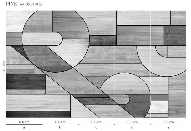 Murale marki Wonderwall sprzedajemy w rolkach o standardowych wymiarach: 100 cm x 300 cm. Jeśli wysokość waszego pomieszczenia jest mniejsza niż 3 metry, wówczas nadmiar tapety należy w odpowiednim miejscu odciąć. Na pełny wzór składa się pięć rolek: a, b, c, d i e. Można wybrać konkretne rolki dopasowując tapetę do swojego wnętrza. Lub można przygotować mural pod konkretny wymiar. W tym celu prosimy o kontakt pod mail sklep@iguane.pl