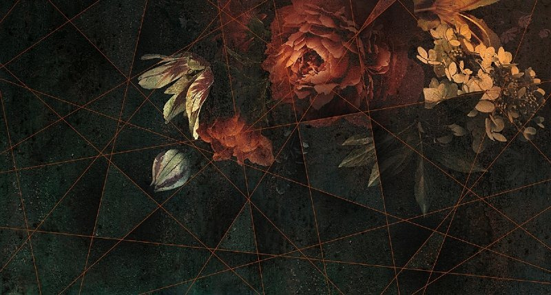 Olbrzymie kwiaty to główny motyw muralu Feng Shui. Wyjątkowe kolory tworzą niezwykły kobiecy klimat, który został przełamany geometrią, ale także w bardzo oryginalny sposób.