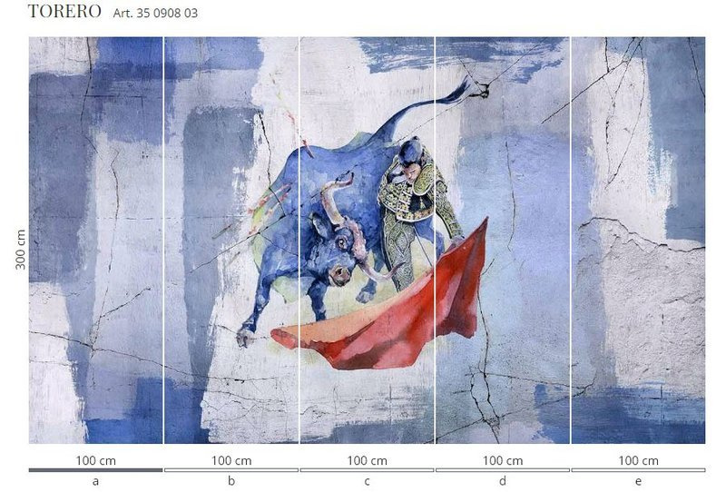 Murale marki Wonderwall sprzedajemy w rolkach o standardowych wymiarach: 100 cm x 300 cm. Jeśli wysokość waszego pomieszczenia jest mniejsza niż 3 metry, wówczas nadmiar tapety należy w odpowiednim miejscu odciąć. Na pełny wzór składa się pięć rolek: a, b, c, d i e. Można wybrać konkretne rolki dopasowując tapetę do swojego wnętrza. Lub można przygotować mural pod konkretny wymiar. W tym celu prosimy o kontakt pod mail sklep@iguane.pl
