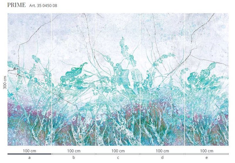 Murale marki Wonderwall sprzedajemy w rolkach o standardowych wymiarach: 100 cm x 300 cm. Jeśli wysokość waszego pomieszczenia jest mniejsza niż 3 metry, wówczas nadmiar tapety należy w odpowiednim miejscu odciąć. Na pełny wzór składa się pięć rolek: a, b, c, d i e. Można wybrać konkretne rolki dopasowując tapetę do swojego wnętrza. Lub można przygotować mural pod konkretny wymiar. W tym celu prosimy o kontakt pod mail sklep@iguane.pl