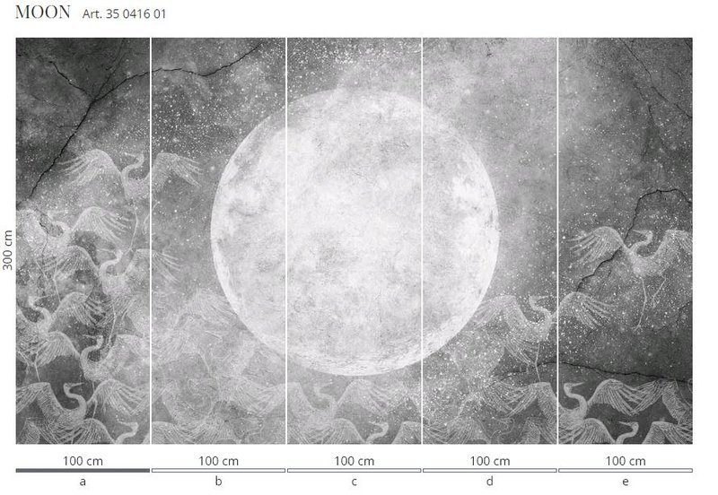 Murale marki Wonderwall sprzedajemy w rolkach o standardowych wymiarach: 100 cm x 300 cm. Jeśli wysokość waszego pomieszczenia jest mniejsza niż 3 metry, wówczas nadmiar tapety należy w odpowiednim miejscu odciąć. Na pełny wzór składa się pięć rolek: a, b, c, d i e. Można wybrać konkretne rolki dopasowując tapetę do swojego wnętrza. Lub można przygotować mural pod konkretny wymiar. W tym celu prosimy o kontakt pod mail sklep@iguane.pl