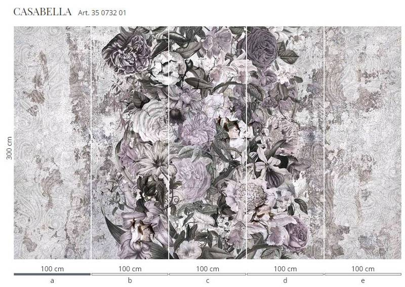 Murale marki Wonderwall sprzedajemy w rolkach o standardowych wymiarach: 100 cm x 300 cm. Jeśli wysokość waszego pomieszczenia jest mniejsza niż 3 metry, wówczas nadmiar tapety należy w odpowiednim miejscu odciąć. Na pełny wzór składa się pięć rolek: a, b, c, d i e. Można wybrać konkretne rolki dopasowując tapetę do swojego wnętrza. Lub można przygotować mural pod konkretny wymiar. W tym celu prosimy o kontakt pod mail sklep@iguane.pl