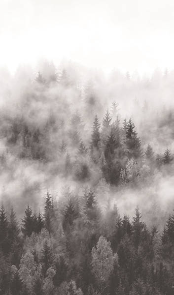 Tajemniczy las w głębokich odcieniach szarości stworzy we wnętrzu wyjątkowy klimat. Doskonała jakość wydruku sprawia, że mural wygląda bardzo realistycznie.