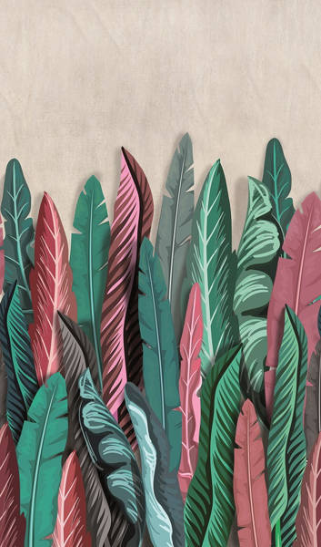Mural inspirowany egzotycznym roślinami w stylu graficznym. Żywe, kontrastowe kolory nadadzą wnętrzu nietuzinkowego charakteru.