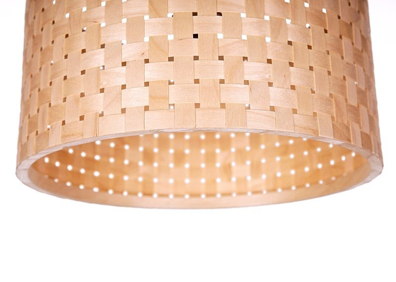 Urocza naturalna lampa Luna to prosta forma z piękną drewnianym splotem. Ręcznie pleciony klosz z cienkich pasków forniru, które najpierw zostały starannie wycięte i oszlifowane, a następnie ręcznie zaplecione w celu uzyskania przestrzennej tekstury. Abażur ma średnicę 35,5 cm i wysokość 21 cm. Pojedynczo lub w zestawie dwóch lub trzech sztuk doskonale sprawdzi się jako oświetlanie kuchennej wyspy czy stołu w jadalni. Sprzedawany w komplecie z czarnym lub białym zestawem sufitowym.