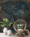 Geometryczny motyw stylu Art Deco stał się tłem. Bo pierwszy plan skradła głowa słonia, a właściwie jej zarys, wypełniony kwiatami w głębokich kolorach. Barwy te świetnie kontrastują ze złotem pojawiającym się w pozostałej części grafiki. Bogaty, gęsty, pełen warstw wzór idealnie sprawdzi się w korytarzach, jadalniach czy salonie.