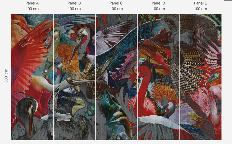 Murale marki Wonderwall sprzedajemy w rolkach o standardowych wymiarach: 100 cm x 300 cm. Jeśli wysokość waszego pomieszczenia jest mniejsza niż 3 metry, wówczas nadmiar tapety należy w odpowiednim miejscu odciąć. Na pełny wzór składa się pięć rolek: a, b, c, d i e. Można wybrać konkretne rolki dopasowując tapetę do swojego wnętrza. Lub można przygotować mural pod konkretny wymiar. W tym celu prosimy o kontakt pod mail sklep@iguane.pl