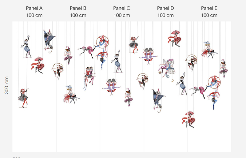 Murale marki Wonderwall sprzedajemy w rolkach o standardowych wymiarach: 100 cm x 300 cm. Jeśli wysokość waszego pomieszczenia jest mniejsza niż 3 metry, wówczas nadmiar tapety należy w odpowiednim miejscu odciąć. Na pełny wzór składa się pięć rolek: a, b, c, d i e. Można wybrać konkretne rolki dopasowując tapetę do swojego wnętrza. Lub można przygotować mural pod konkretny wymiar. W tym celu prosimy o kontakt pod mail sklep@iguane.pl