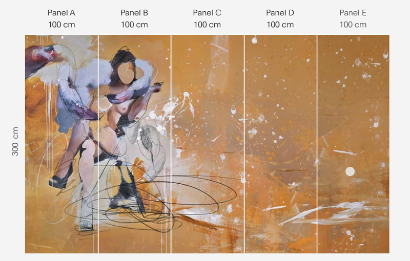 Murale marki Wonderwall sprzedajemy w rolkach o standardowych wymiarach: 100 cm x 300 cm. Jeśli wysokość waszego pomieszczenia jest mniejsza niż 3 metry, wówczas nadmiar tapety należy w odpowiednim miejscu odciąć. Na pełny wzór składa się pięć rolek: a, b, c, d i e. Można wybrać konkretne rolki dopasowując tapetę do swojego wnętrza. Lub można przygotować mural pod konkretny wymiar. W tym celu prosimy o kontakt pod mail sklep@iguane.pl