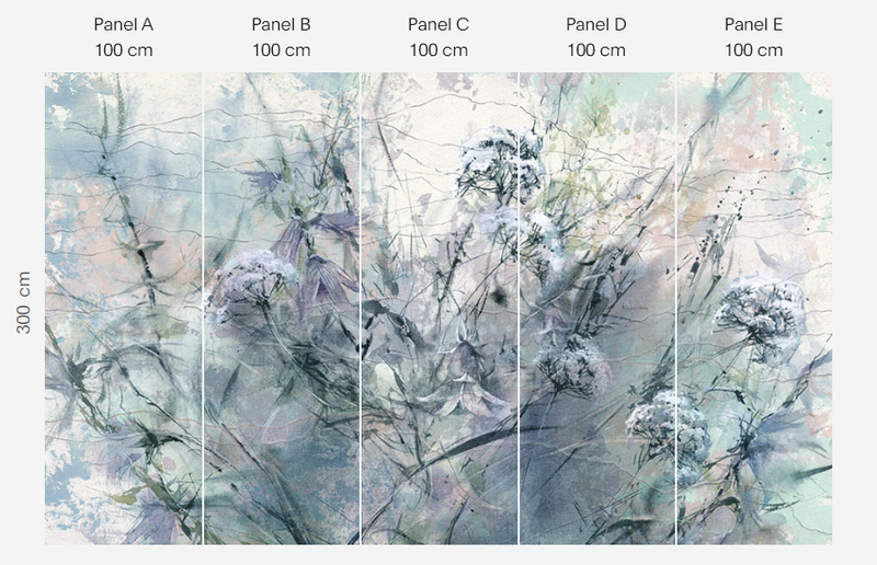Murale marki Wonderwall sprzedajemy w rolkach o standardowych wymiarach: 100 cm x 300 cm. Jeśli wysokość waszego pomieszczenia jest mniejsza niż 3 metry, wówczas nadmiar tapety należy w odpowiednim miejscu odciąć. Na pełny wzór składa się pięć rolek: a, b, c, d i e. Można wybrać konkretne rolki dopasowując tapetę do swojego wnętrza. Lub można przygotować mural pod konkretny wymiar. W tym celu prosimy o kontakt pod mail sklep@iguane.pl