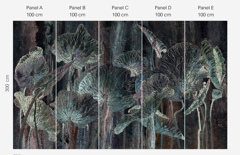 Murale marki Wonderwall sprzedajemy w rolkach o standardowych wymiarach: 100 cm x 300 cm. Jeśli wysokość waszego pomieszczenia jest mniejsza niż 3 metry, wówczas nadmiar tapety należy w odpowiednim miejscu odciąć. Na pełny wzór składa się pięć rolek: a, b, c, d i e. Można wybrać konkretne rolki dopasowując tapetę do swojego wnętrza. Lub można przygotować mural pod konkretny wymiar. W tym celu prosimy o kontakt pod mail sklep@iguane.pl