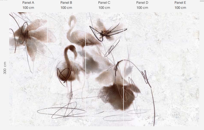 Murale marki Wonderwall sprzedajemy w rolkach o standardowych wymiarach: 100 cm x 300 cm. Jeśli wysokość waszego pomieszczenia jest mniejsza niż 3 metry, wówczas nadmiar tapety należy w odpowiednim miejscu odciąć. Na pełny wzór składa się pięć rolek: a, b, c, d i e. Można wybrać konkretne rolki dopasowując tapetę do swojego wnętrza. Lub można przygotować mural pod konkretny wymiar. W tym celu prosimy o kontakt pod mail sklep@iguane.pl