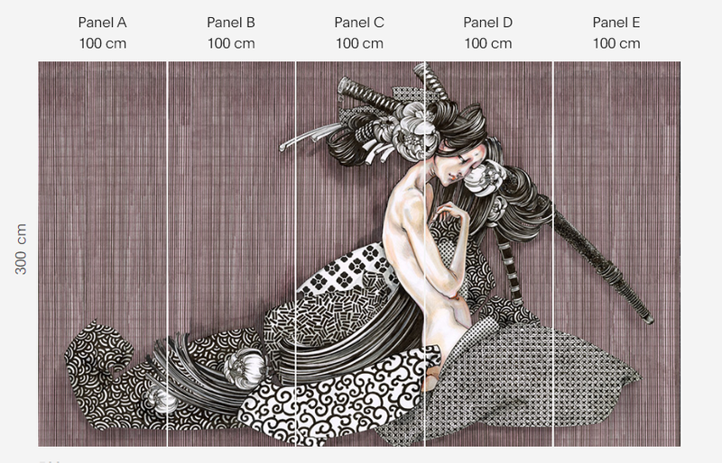 Murale marki Wonderwall sprzedajemy w rolkach o standardowych wymiarach: 100 cm x 300 cm. Jeśli wysokość waszego pomieszczenia jest mniejsza niż 3 metry, wówczas nadmiar tapety należy w odpowiednim miejscu odciąć. Na pełny wzór składa się pięć rolek: a, b, c, d i e. Można wybrać konkretne rolki dopasowując tapetę do swojego wnętrza. Lub można przygotować mural pod konkretny wymiar. W tym celu prosimy o kontakt pod mail sklep@iguane.pl