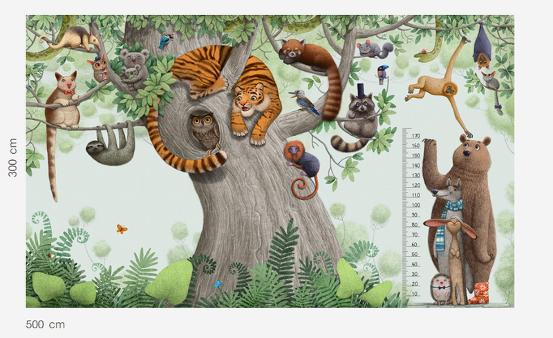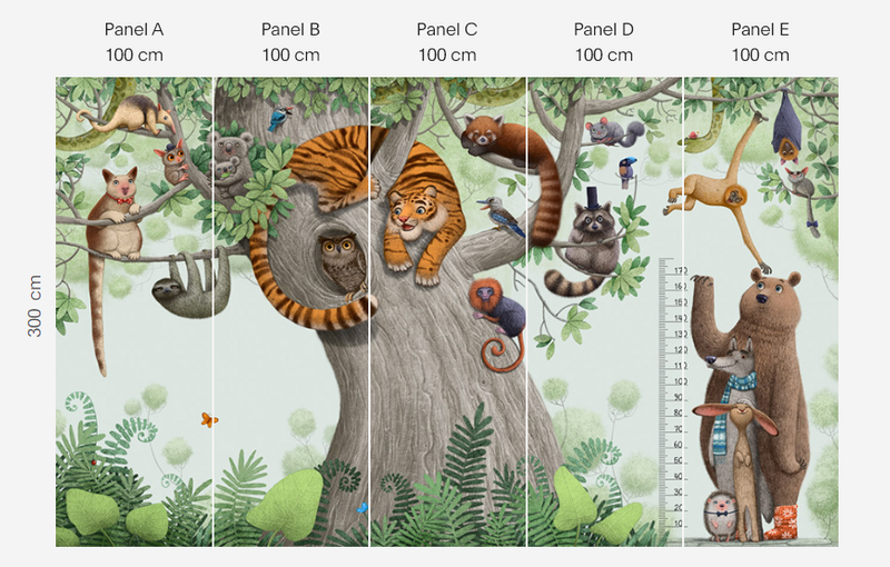 Murale marki Wonderwall sprzedajemy w rolkach o standardowych wymiarach: 100 cm x 300 cm. Jeśli wysokość waszego pomieszczenia jest mniejsza niż 3 metry, wówczas nadmiar tapety należy w odpowiednim miejscu odciąć. Na pełny wzór składa się pięć rolek: a, b, c, d i e. Można wybrać konkretne rolki dopasowując tapetę do swojego wnętrza. Lub można przygotować mural pod konkretny wymiar. W tym celu prosimy o kontakt pod mail sklep@iguane.pl