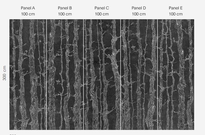 Murale marki Wonderwall sprzedajemy w rolkach o standardowych wymiarach: 100 cm x 300 cm. Jeśli wysokość waszego pomieszczenia jest mniejsza niż 3 metry, wówczas nadmiar tapety należy w odpowiednim miejscu odciąć. Na pełny wzór składa się pięć rolek: a, b, c, d i e. Można wybrać konkretne rolki dopasowując tapetę do swojego wnętrza. Lub można przygotować mural pod konkretny wymiar. W tym celu prosimy o kontakt pod mail sklep@iguane.pl