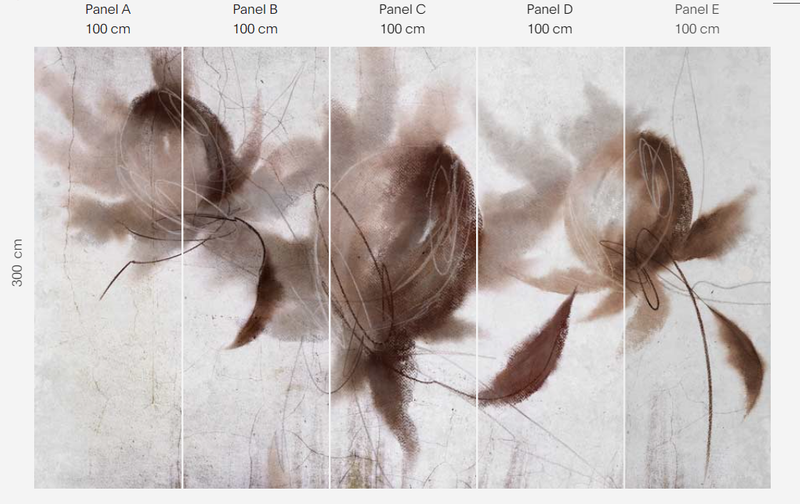 Murale marki Wonderwall sprzedajemy w rolkach o standardowych wymiarach: 100 cm x 300 cm. Jeśli wysokość waszego pomieszczenia jest mniejsza niż 3 metry, wówczas nadmiar tapety należy w odpowiednim miejscu odciąć. Na pełny wzór składa się pięć rolek: a, b, c, d i e. Można wybrać konkretne rolki dopasowując tapetę do swojego wnętrza. Lub można przygotować mural pod konkretny wymiar. W tym celu prosimy o kontakt pod mail sklep@iguane.pl