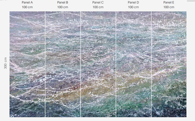 Murale marki Wonderwall sprzedajemy w rolkach o standardowych wymiarach: 100 cm x 300 cm. Jeśli wysokość waszego pomieszczenia jest mniejsza niż 3 metry, wówczas nadmiar tapety należy w odpowiednim miejscu odciąć. Na pełny wzór składa się pięć rolek: a, b, c, d i e. Można wybrać konkretne rolki dopasowując tapetę do swojego wnętrza. Lub można przygotować mural pod konkretny wymiar. W tym celu prosimy o kontakt pod mail sklep@iguane.pl