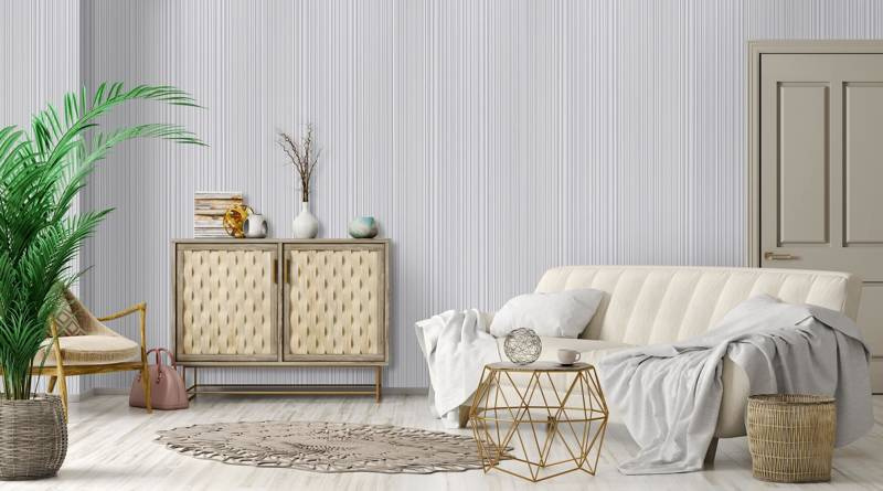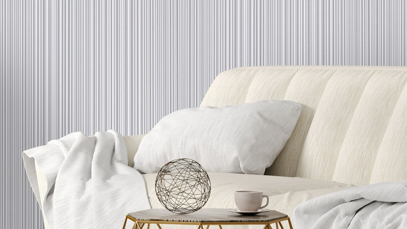 Strukturalna tapeta obiektowa o dużej odporności. Przestrzenne prążki tworzą niezwykłą powierzchnię na ścianie.
