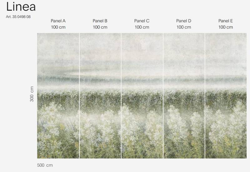 Murale marki Wonderwall sprzedajemy w rolkach o standardowych wymiarach: 100 cm x 300 cm. Jeśli wysokość waszego pomieszczenia jest mniejsza niż 3 metry, wówczas nadmiar tapety należy w odpowiednim miejscu odciąć. Na pełny wzór składa się pięć rolek: a, b, c, d i e. Można wybrać konkretne rolki dopasowując tapetę do swojego wnętrza. Lub można przygotować mural pod konkretny wymiar. W tym celu prosimy o kontakt pod mail sklep@iguane.pl