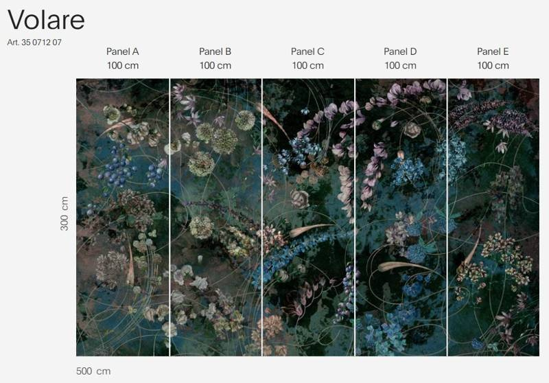 Murale marki Wonderwall sprzedajemy w rolkach o standardowych wymiarach: 100 cm x 300 cm. Jeśli wysokość waszego pomieszczenia jest mniejsza niż 3 metry, wówczas nadmiar tapety należy w odpowiednim miejscu odciąć. Na pełny wzór składa się pięć rolek: a, b, c, d i e. Można wybrać konkretne rolki dopasowując tapetę do swojego wnętrza. Lub można przygotować mural pod konkretny wymiar. W tym celu prosimy o kontakt pod mail sklep@iguane.pl