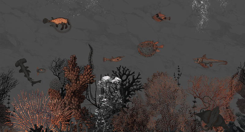 Tajemniczy, urzekający świat podmorski w muralu Saint Lucia jest spokojny i kojący. Dzięki stonowanym kolorom i nieprzesyconej grafice możemy ożywić nasze wnętrza.
