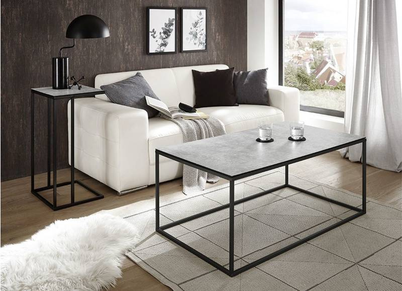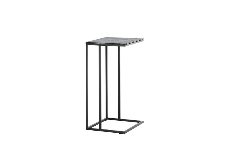 Stolik pomocnik wysoki, blat ceramika szara, stelaż metal, lakier czarny mat