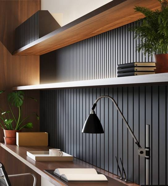 Panel ścienny 3D W116 - Bar XL jest częścią kolekcji elementów przestrzennych. Wzór imitujący lamele, jako odpowiedź na obecne trendy w nowoczesnej architekturze.