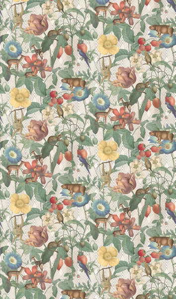 Ukazuje surrealistyczny motyw potężnych owocowych krzewów i niewielkich zwierząt sawanny, a wszytko to osadzone na eleganckim geometrycznym tle. Stworzy efektowną przestrzeń w domu, biurze lub restauracji.