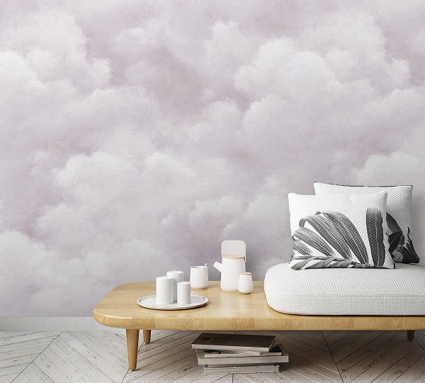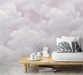 Białe obłoczki kontrastują z tłem tworząc subtelną przestrzenną kompozycję. Przypominają nieco malunek akrylami ukazując monumentalny obraz. Stworzy efektowną przestrzeń w domu, biurze lub restauracji.