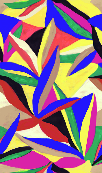 Ukazuje kubistyczne kwiaty w prostych nasyconych kolorach budząc skojarzenia do twórczości Pabla Picasso. Kompozycja wprowadza ożywienie i współczesność do wnętrz.  Stworzy efektowną przestrzeń w domu, biurze lub restauracji.