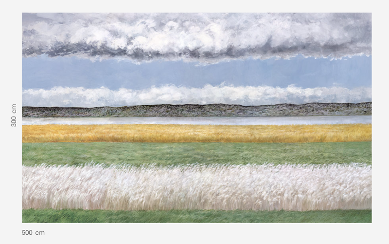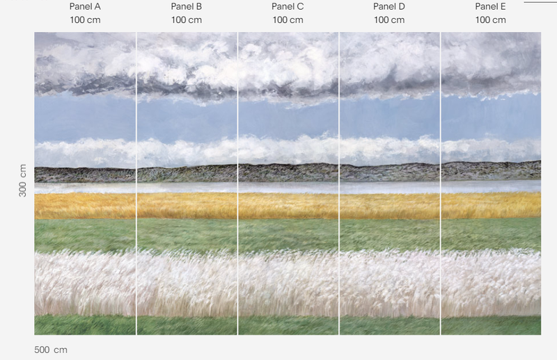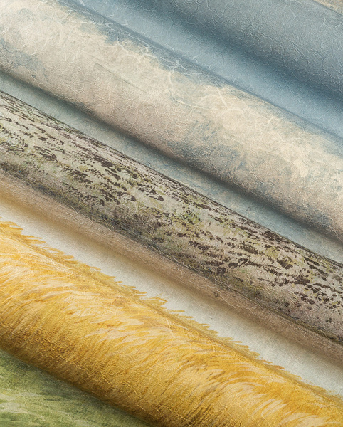 Mural Mellow to uchwycenie lata, jego ciepła, kojących barw i krajobrazów. Wzór pełen słońca i falujących traw.