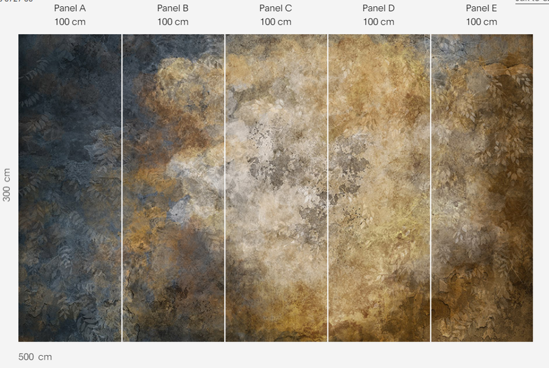 Murale marki Wonderwall sprzedajemy w rolkach o standardowych wymiarach: 100 cm x 300 cm. Jeśli wysokość waszego pomieszczenia jest mniejsza niż 3 metry, wówczas nadmiar tapety należy w odpowiednim miejscu odciąć. Na pełny wzór składa się pięć rolek: a, b, c, d i e. Można wybrać konkretne rolki dopasowując tapetę do swojego wnętrza. Lub można przygotować mural pod konkretny wymiar. W tym celu prosimy o kontakt pod mail sklep@iguane.pl