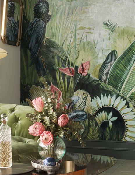 Wymarzona przestrzeń z ilustracją na ścianie jak z rajskiej, egzotycznej wyspy. Tapeta Gaia przenosi w świat cudownej natury i jej terapeutycznego oddziaływania na zmysły.