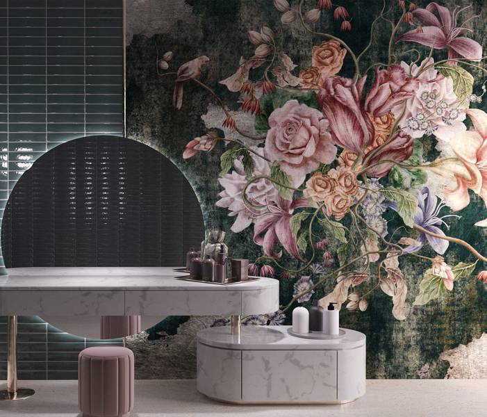 Piękna kompozycja przedstawiająca okazały bukiet kolorowych kwiatów o finezyjnych kształtach. Subtelne linie tworzą cały wzór wyglądający jak namalowany ręcznie, oplatając swoimi barwami każdy kawałek projektu. Mural Caveron to ciekawa propozycja do nowoczesnych, botanicznych, vintage, a nawet klasycznych wnętrz. Doskonale ozdobi akcentowe ściany salonów, sypialni, łazienek oraz jadalni.