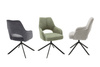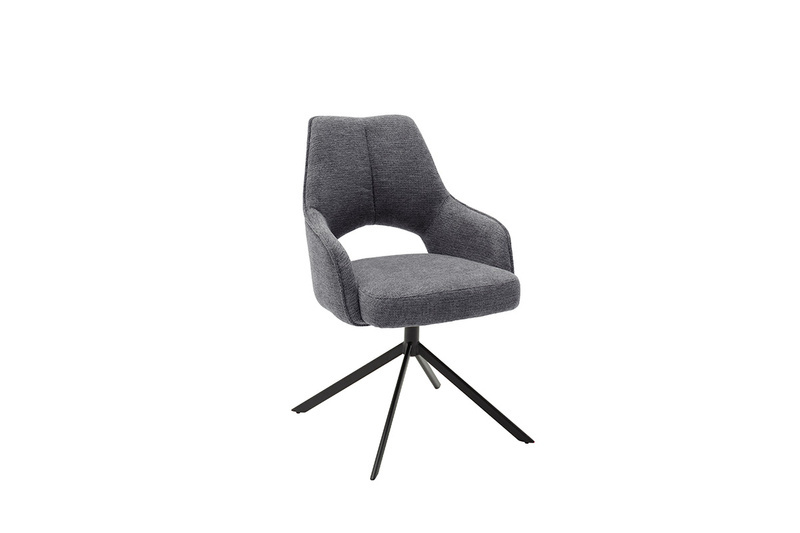 Lekka forma i miękka tkanina typu szenil świetnie sprawdzi się przy rodzinnym stole. Wygodę zapewniają sprężyny kieszeniowe w siedzisku. Dodatkowo wysoki komfort zapewnia obrotowy mechanizm (180 stopni) z mechanizmem powrotnym. Krzesło na stelażu typu statyw lakierowanym na czarny mat.