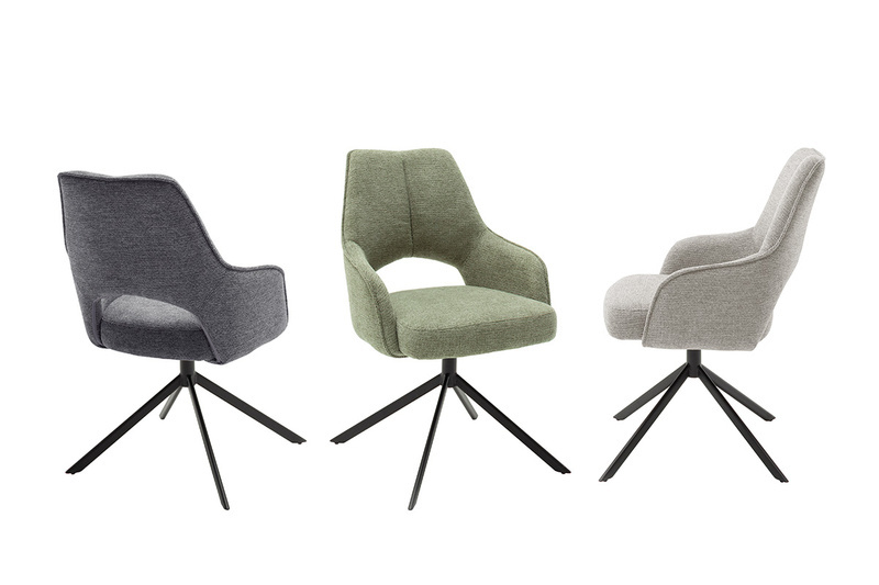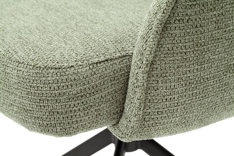 Lekka forma i miękka tkanina typu szenil świetnie sprawdzi się przy rodzinnym stole. Wygodę zapewniają sprężyny kieszeniowe w siedzisku. Dodatkowo wysoki komfort zapewnia obrotowy mechanizm (180 stopni) z mechanizmem powrotnym. Krzesło na stelażu typu statyw lakierowanym na czarny mat.