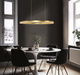 Efektowna a zarazem prosta i uniwersalna w formie lampa Halo będzie niezaprzeczalną ozdobą pomieszczenia a dostępne kolory (czarny lub złoty) podkreślają jej formę. Wielka średnica lampy będzie idealnie się komponować nad stołami konferencyjnymi czy w otwartych przestrzeniach.