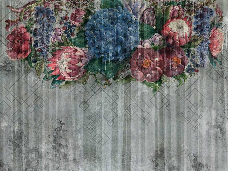 Mural Vincera przedstawia piękną, kwiatową kompozycję, która znajduje się tuż pod samym sufitem, spadając uroczą kaskadą. Cudowne kolory i nietuzinkowe bukiety tchną w Twoje pomieszczenie ogrom natury, radości i spokoju. To wspaniałe tło dla stonowanych mebli. Projekt pozwoli zaakcentować jedną ze ścian Twojego salonu, sypialni, jadalni, przedpokoju a nawet łazienki.